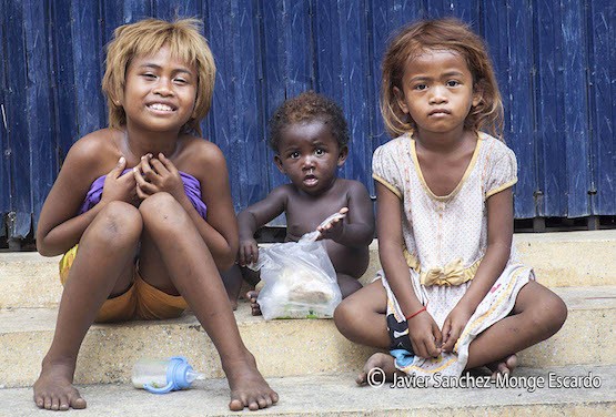 En la imagen, aparecen tres niños, hijos de una madre muy pobre que como se había ido a trabajar los había dejado durante el día en las inmediaciones de una Pagoda Budista por tratarse de un lugar seguro. Según me contaron, los tres eran hijos de la misma madre y el más pequeño –fruto de una genética recesiva hasta entonces- había nacido de raza negra.