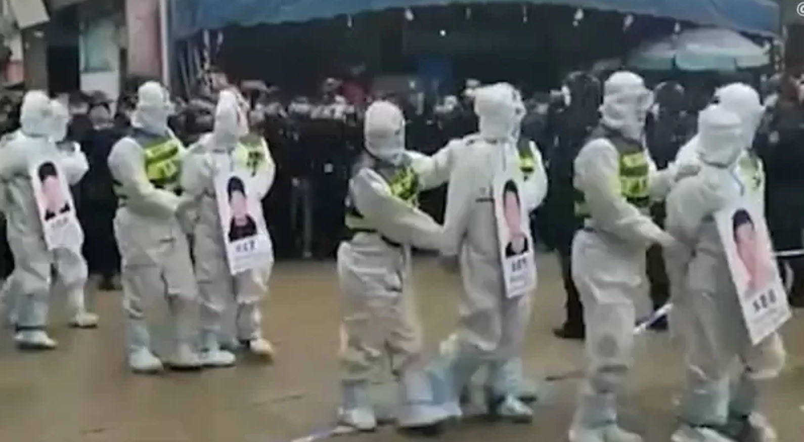 Acusados de haber facilitado la entrada en China de migrantes, a pesar del cierre de fronteras decretado a causa de la pandemia, cuatro hombres, vistiendo un mono blanco y con las manos esposadas en la espalda, fueron obligados el martes 28 de diciembre de 2021 a desfilar por las calles de Jingxi, una ciudad del sur de China, escoltados por policías que llevaban pancartas con el nombre y la foto de los condenados.