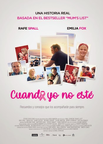 Cuando-yo-no-esté-poster “Cuando yo no esté”, la lista de recomendaciones de una madre que se muereEn sus últimos días de vida, hizo una lista con sus pensamientos y recuerdos, y algunos consejos también, para ayudar al hombre que amaba a organizar lo mejor posible el futuro con sus dos hijas. Emilia Fox (“El pianista”, “El retrato de Dorian Grey”) y Rafe Spall (“La vida de Pi”, “Black Mirror”) son la pareja elegida por el realizador Niall Johnson (“Secretos de familia”) para protagonizar este drama.