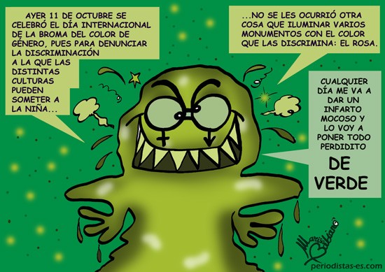 Para Mucus, inteligencia natural de un moco, no deja de ser un magnífico chiste por parte de las autoridades que pretenden tomar medidas para paliar las discriminaciones. Ya que el color rosa es el que margina a niñas de niños, y el que margina a niños de niñas es el azul ¿verdad? Mucus llega a dudar si nació aquí o en una Luna verde, claro…