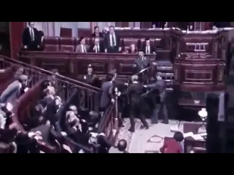 Las imágenes las conocemos. TVE dejó conectada una de sus cámaras y gracias a esto el mundo entero pudo ver cómo el militar golpista subía la escalinata de la tribuna de los oradores, con la pistola desenfundada. En ese momento el general Gutierrez Mellado, vicepresidente del Gobierno de Adolfo Suárez, se levantó de su escaño para interrogar a Tejero sobre lo que estaba pasando, ordenándole que depusiera las armas.