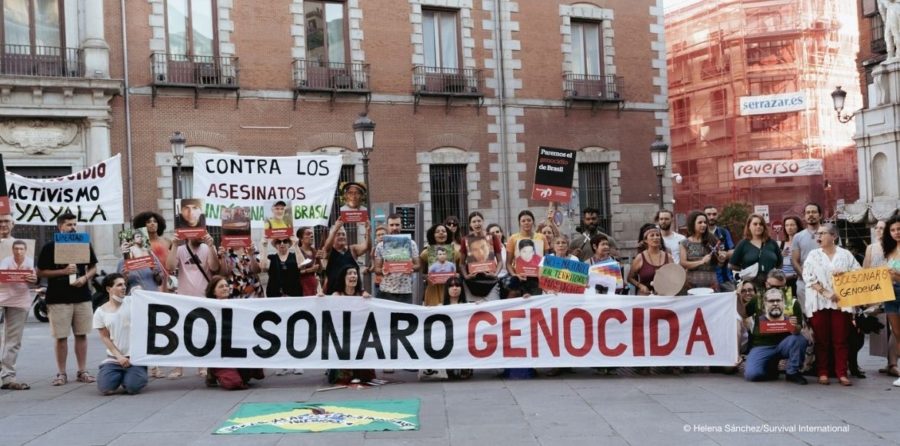 «Ante una situación de guerra declarada a los pueblos indígenas de Brasil por el Gobierno genocida de Bolsonaro, asistimos a cómo se recibe a un cómplice necesario como Marcelo Augusto Xavier da Silva en Madrid. ¡Basta ya! Los asesinatos y el despojo a los pueblos y defensores indígenas en Brasil merecen una respuesta política contundente», afirmó Lola Rama, activista de Survival International, durante su discurso en el acto de protesta.