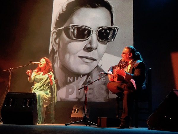 Acompañada por uno de sus guitarristas habituales, Juan Ramón Caro, virtuoso tanto en lides de cante y toque, cómplice en diálogos llenos de jondura, como en conciertos de guitarra solista. La verdad fue un recital muy inspirador a pesar de la hora de comienzo, pasada la una de la madrugada del 7 de agosto. Estaba claro que el grado de implicación de ambos artistas era muy alto. Más avanzado el concierto se unió la guitarra de Andrés Cansinos y en cantes de ida y vuelta la bailaora Carmen Camacho.