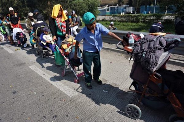 Llevan casi un mes caminando y más de 2000 kilómetros recorridos. Los pequeños se aburren, hacen berrinches (lloran), se enfadan. Prácticamente todos se han enfermado y muchos muestran las huellas del cansancio. Sus padres los abrazan, los cargan, los llevan en hombros, los hacen caminar de prisa, les agarran de la mano para que no se les pierdan y les pasan algún juguete para que se entretengan. Pocos tienen energía para regañarlos.