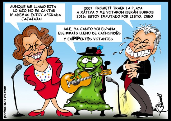 Además aquí no dimite nadie porque de hacerlo, significaría reconocer algo, y así andamos entre aforados y aforadas, con voz y voto en la política de España. Esa en la que Rita Barberá perteneciente al PP, este partido al que la gente PPensante le ha dado mayoría absoluta en el senado, y ahora es cuando pueden aplaudir… ¡plas, plas, plas…! Cabe preguntarse: ¿A quiénes representan el PP en España? ¿A quiénes han estado representando? ¿Cómo consiguió las mayorías absolutas estando pringado de corrupción? ¿Quiénes les han estado apoyando, financiando?