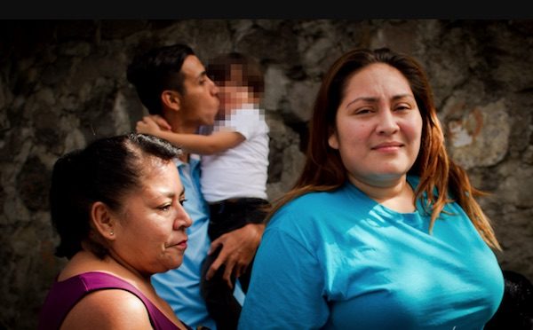 Katy Rodríguez se reúne con familiares, uno de los que carga en brazos a su hijo de tres años, tras salir del Centro de Atención al Migrante, en San Salvador. Madre e hijo fueron separados cuatro meses, tras ingresar en forma irregular a Estados Unidos, como sucedió a miles de familias centroamericanas desde abril. Crédito: Edgardo Ayala/IPS