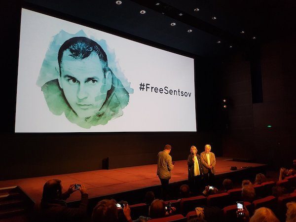 En el acto, que tenía un carácter reivindicativo, la ministra de cultura francesa, Françoise Nyssen, reclamó la libertad del cineasta: «Es necesario que Rusia libere a Oleg Sentsov», y recordó que el presidente francés, Emmanuel Macron, ha intercedido varias veces por el cineasta ucraniano con su homólogo ruso, Vladimir Putin. “El combate por la libertad de Oleg Sentsov es urgente”, dijo, añadiendo que se trata “de un atentado a la libertad fundamental de los derechos artísticos.