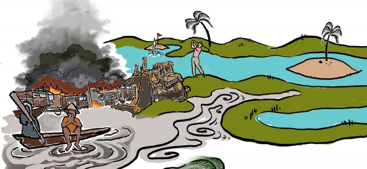 Construyeron ciudades como motores de la actividad económica, con escaso respeto por la biodiversidad del planeta, y al hacerlo, descuidaron las aldeas, las costas, el bosque y las personas que vivían allí. Cortaron árboles para establecer grandes plantaciones o resorts de lujo para turistas adinerados, y perforaron la tierra en busca de minerales.