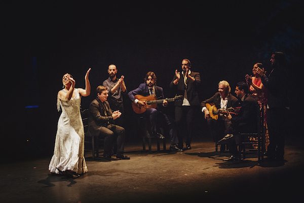 Hizo cambio de trajes para cada palo y ahora para los Abandolaos se puso un traje con resonancias campesinas. Aquí las guitarras se van por unos cerros no previstos en forma de Malagueña por el maestro Álvaro Martinete y luego por otros cerros que construye el cante por fandangos verdiales, siempre en sintonía con la tierra y la tradición, siempre en sintonía con la memoria nazarí y en conjunción profunda de todos los artistas, con complicidades quizá no ensayadas pero que surgen en un momento de sentimientos y esto es lo extraordinario del arte jondo. Que la estructura prevista se torna en mero soporte, pero lo que sucede en escena es imprevisible y unas veces sucede y otras no. Aquí pasó, ese fue nuestro privilegio, quizá de una sola noche. Porque el fluir del arte es como el fluir de un río, que nunca se repite, siempre es distinto. Por eso es complicado hablar de corregir aspectos después de un estreno. Lo que irá cambiando todo será el duende, por donde y cuando aparezca.